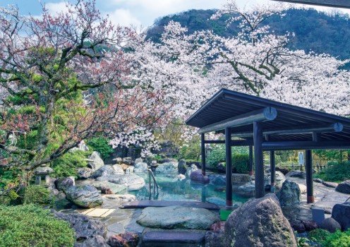 ⽇本観光地百選にも選ばれた庄川峡。湯に浸かれば、⾃分がその⾃然の⼀部になったような感覚にもなる⼤きな岩⾵呂。⽊の⾹にも癒される檜露天⾵呂や露天かめ⾵呂。また貸切露天⾵呂には、江⼾時代から昭和初期まで、対岸にある三条⼭で採掘されていた緑⾊凝灰岩・⾦屋⽯(かなやいし)の湯船。こだわりの温もりもお楽しみください。