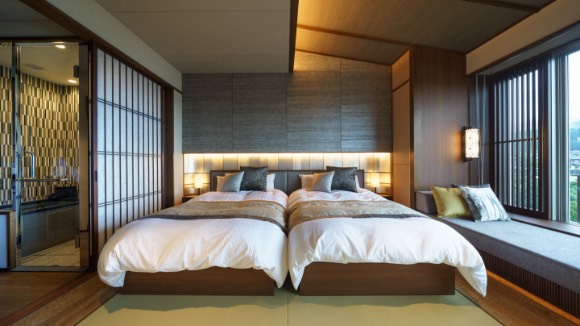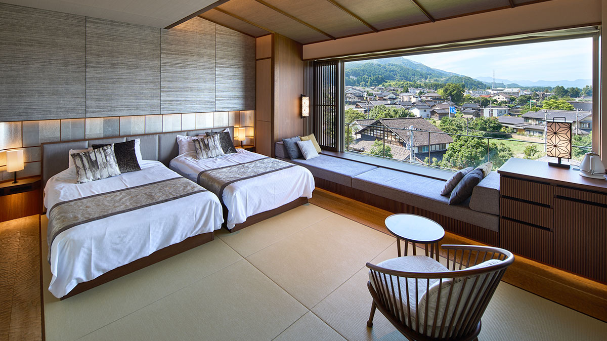 2名様まで布団利用が可能な広々とした和モダン空間。