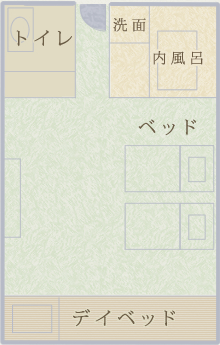 備え付けのシモンズ製ツインベッドに加え、